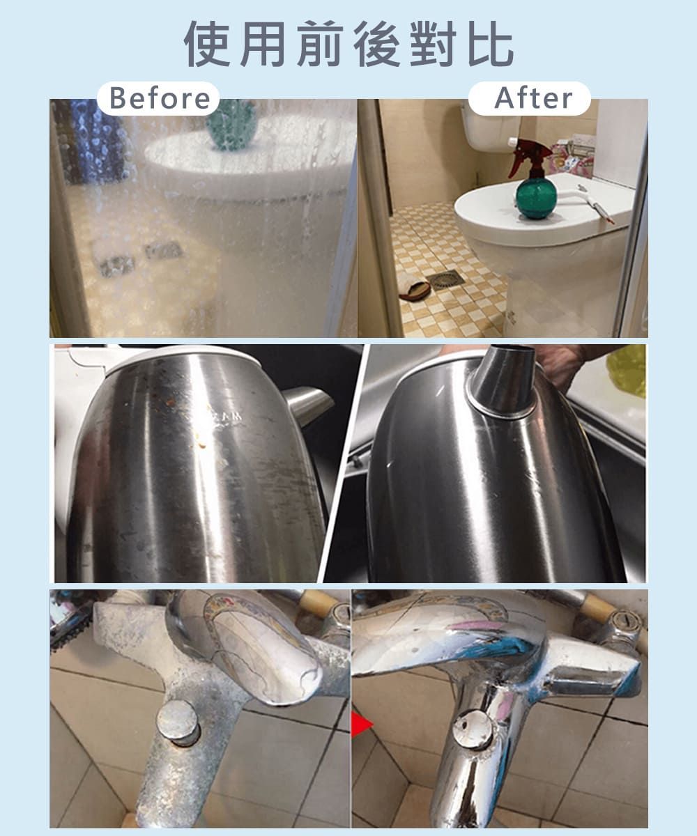 適用範圍:清潔衛浴設備(浴缸、臉盆、馬桶、水龍頭)、地板磁磚、衛浴拉門