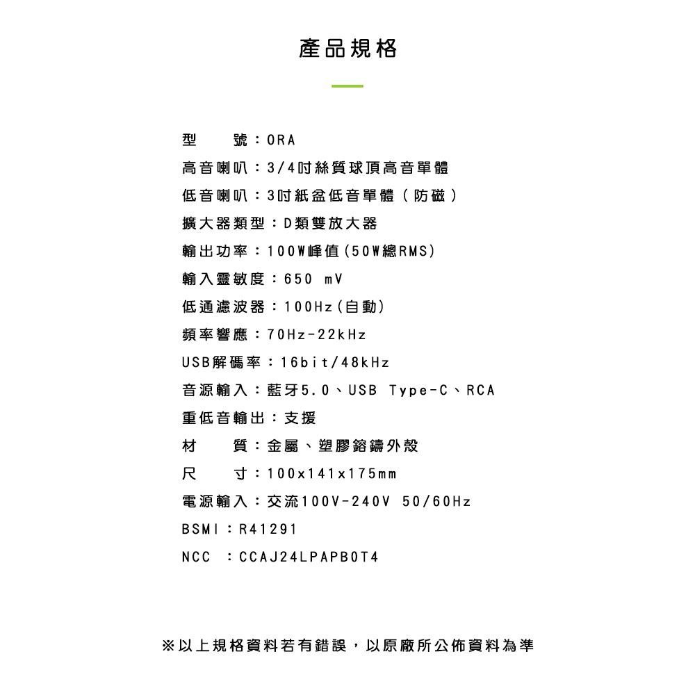 音源輸入:藍牙5.0、USB Type-C、RCA