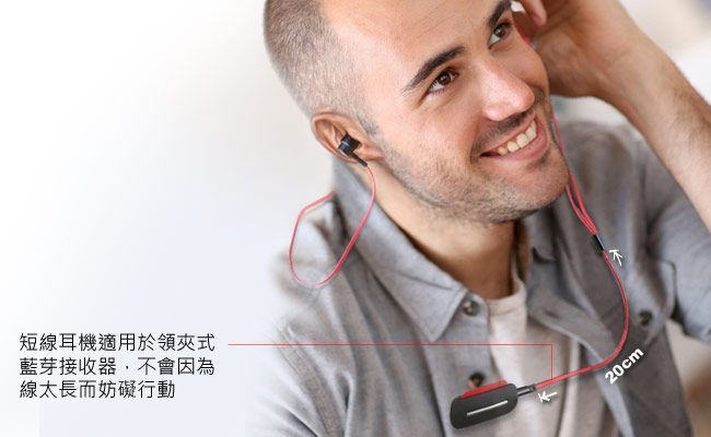 搭配領夾式的藍芽接收器,長長的耳機線懸在胸前讓你非常傷腦筋?