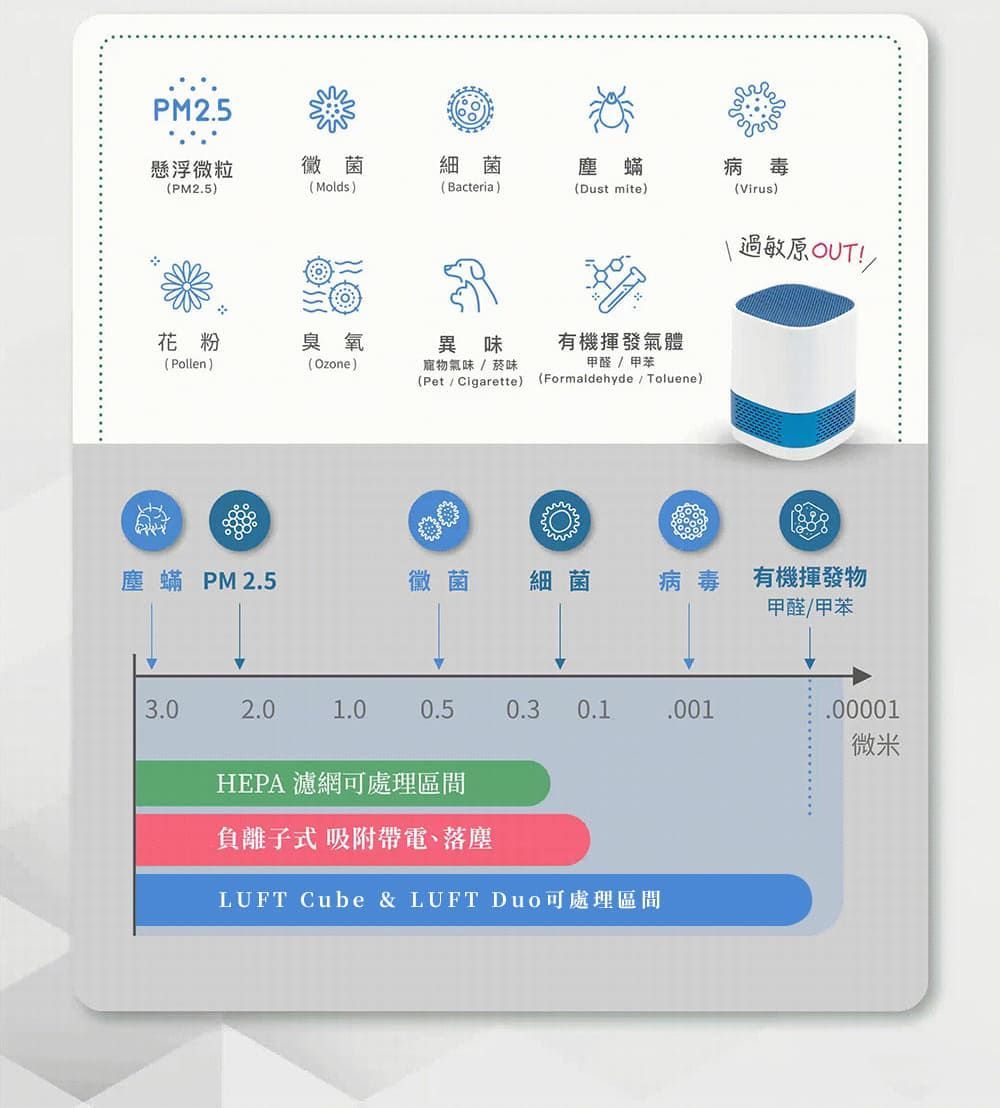 ●有效去除PM2.5、塵蟎、細菌、病毒、甲醛、寵物氣味等9大過敏原