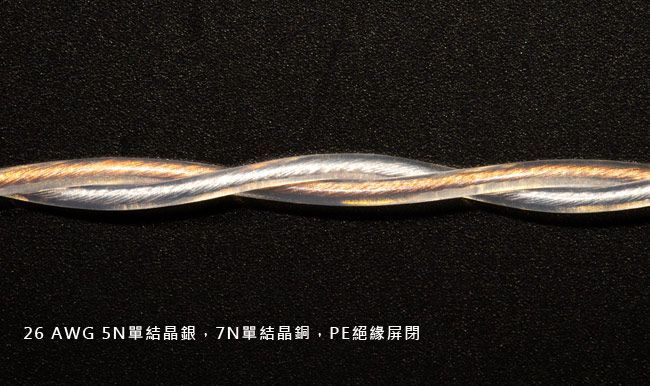 ● 26 AWG 5N單結晶銀,7N單結晶銅,PE絕緣屏閉