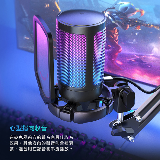【FIFINE A6V USB心型指向電容式RGB麥克風】