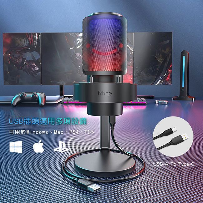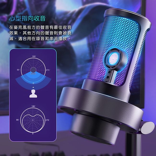 【FIFINE A8 USB心型指向電容式RGB麥克風】