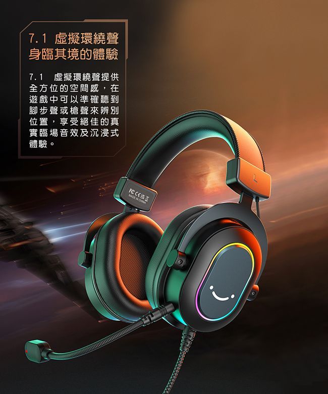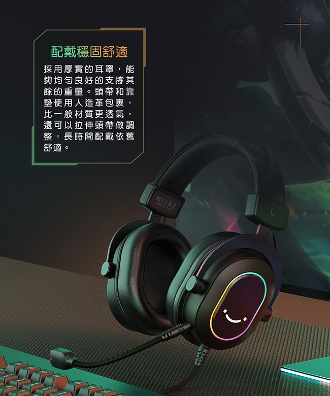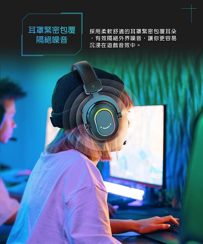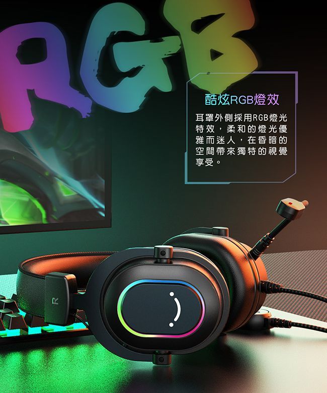 耳罩外側採用RGB燈光特效,柔和的燈光優雅而迷人,