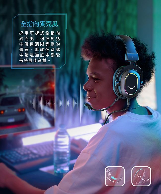 採用可拆式全指向麥克風,可在對話中傳達清晰完整的聲音,