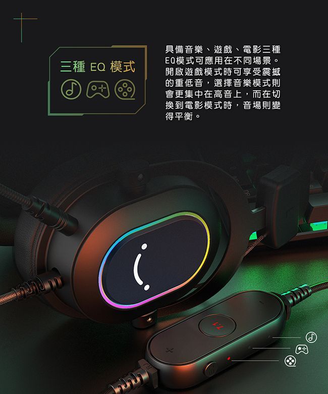 具備音樂、遊戲、電影三種EQ模式可應用在不同場景。