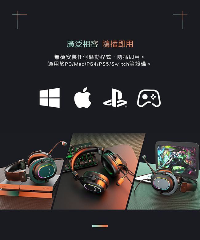 無須安裝任何驅動程式,隨插即用。 適用於PC/Mac/PS4/PS5/Switch等設備。