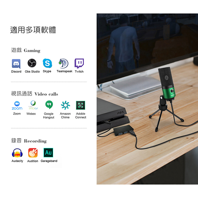 適用於YouTuber、錄音、直播、線上會議、教學、遊戲、PS4等。