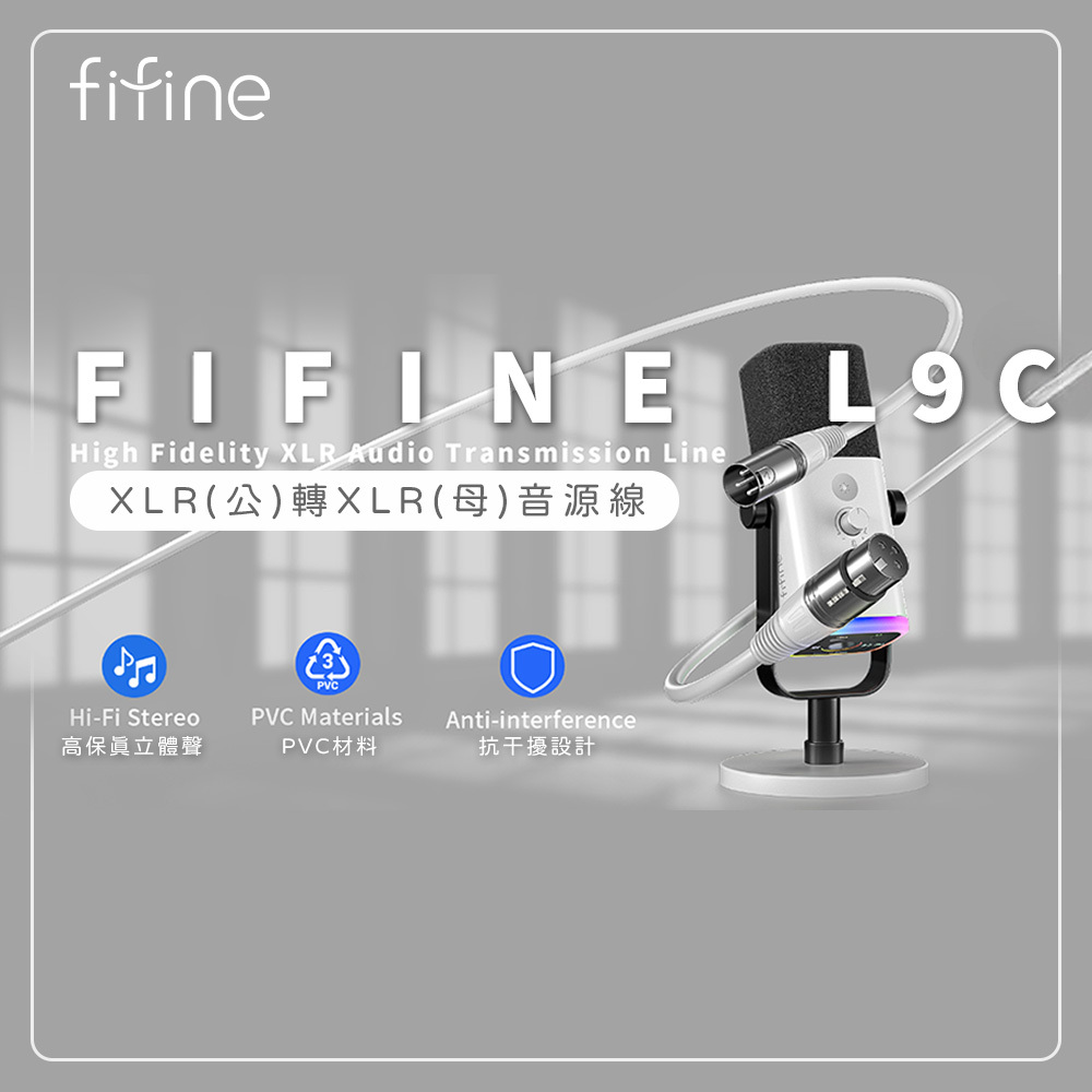 【FIFINE L9C XLR(公)轉XLR(母)音源線(180cm)】