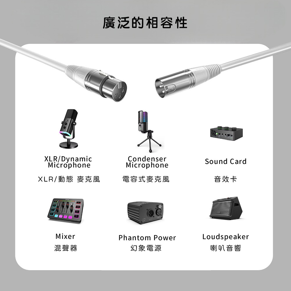 ● 一端接頭為XLR公頭,一端為XLR母頭