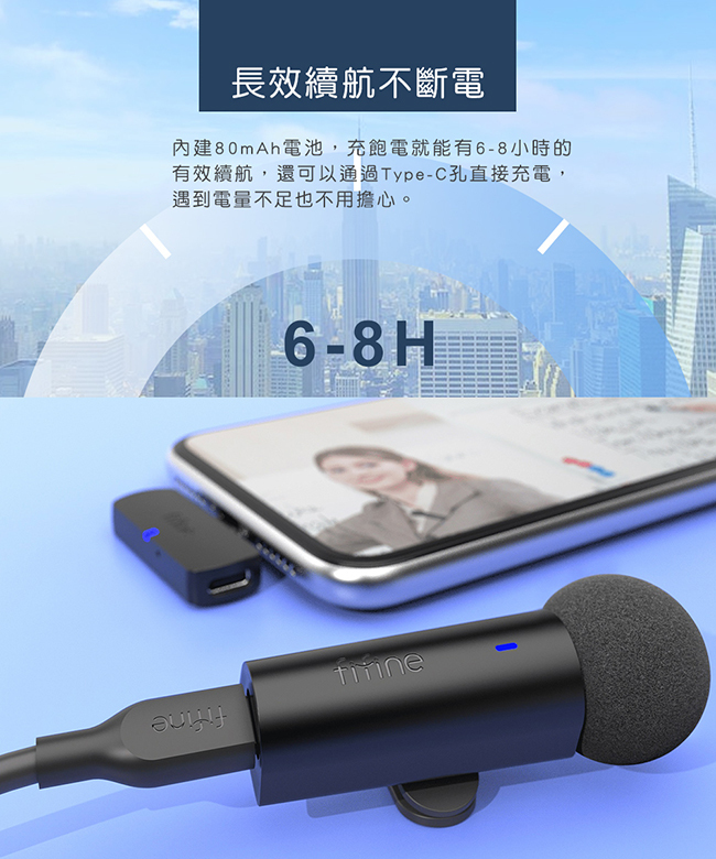內建80mAh電池,充飽電就能有6-8小時的有效續航,