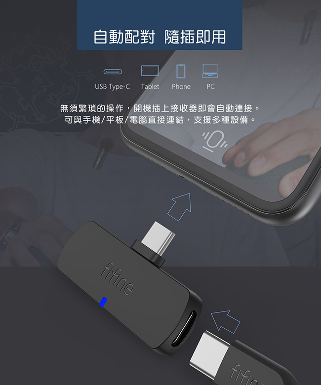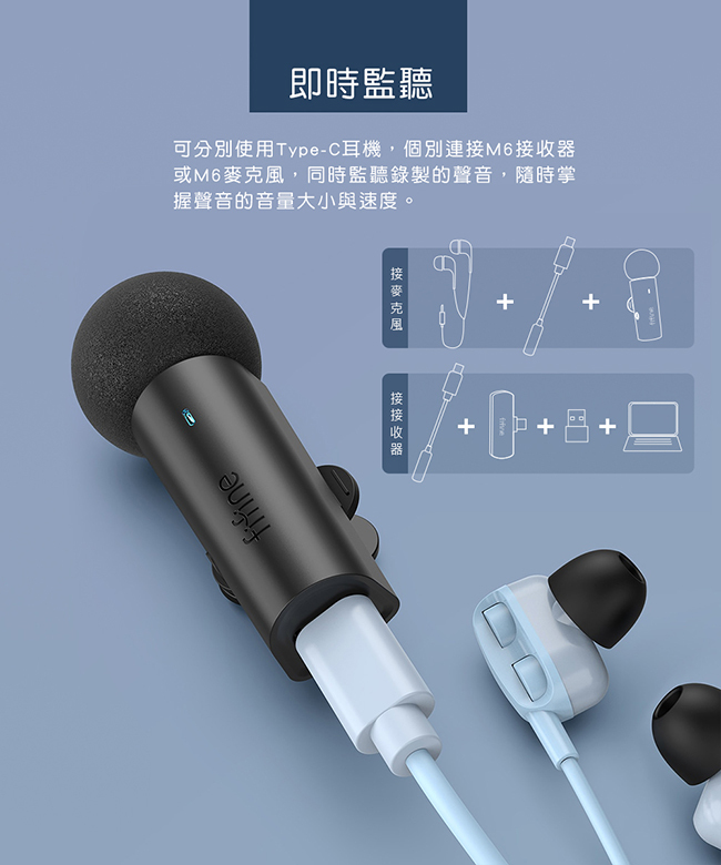 可分別使用Type-C耳機,個別連接M6接收器或M6麥克風,