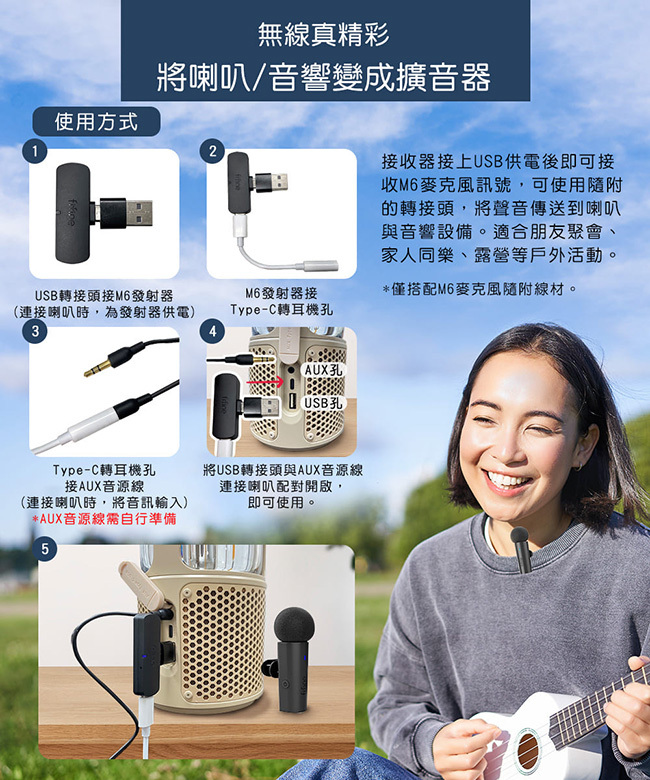 3. M6僅作聲音轉接,不支援具有晶片解碼功能的數位Type-C耳機或轉接頭。