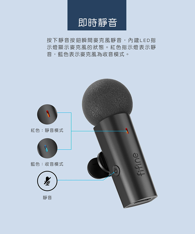 按下靜音按鈕瞬間麥克風靜音,內建LED指示燈顯示麥克風的狀態。