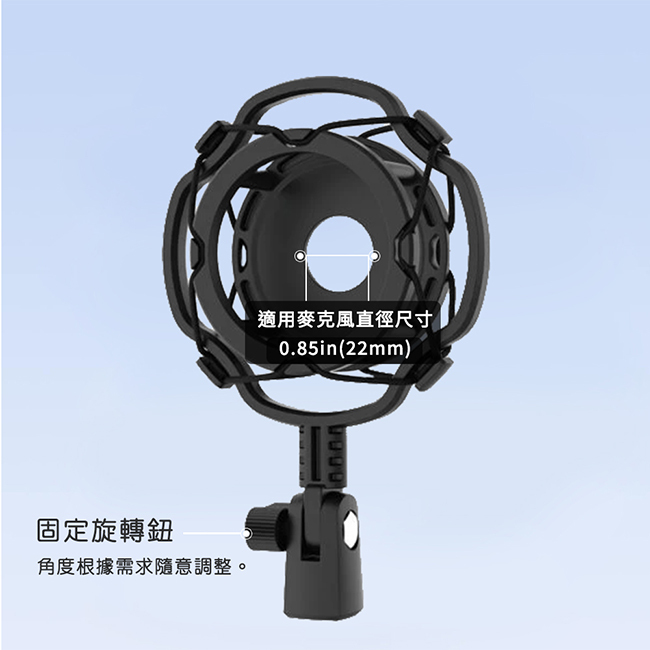 適用麥克風直徑尺寸:0.85in(22mm)