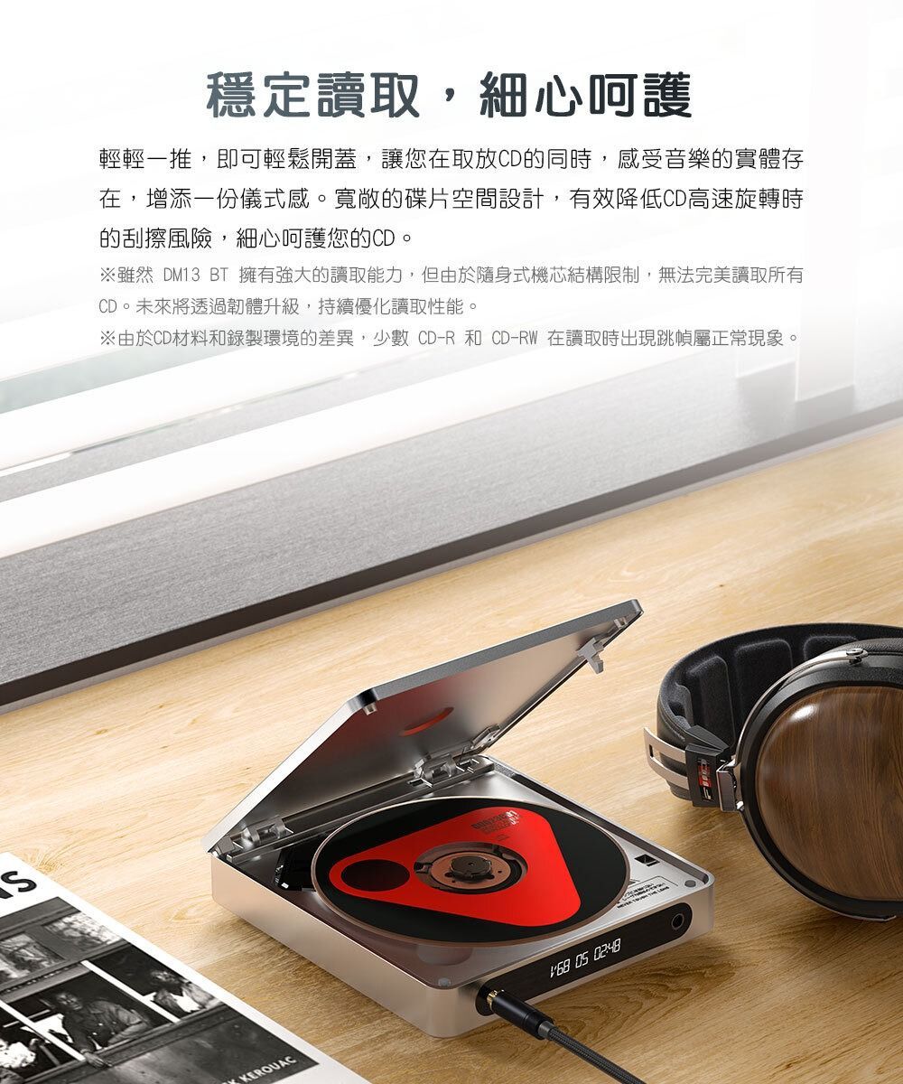 ※雖然 DM13 BT 擁有強大的讀取能力,但由於隨身式機芯結構限制,無法完美讀取所有 CD。未來將透過韌體升級,持續優化讀取性能。