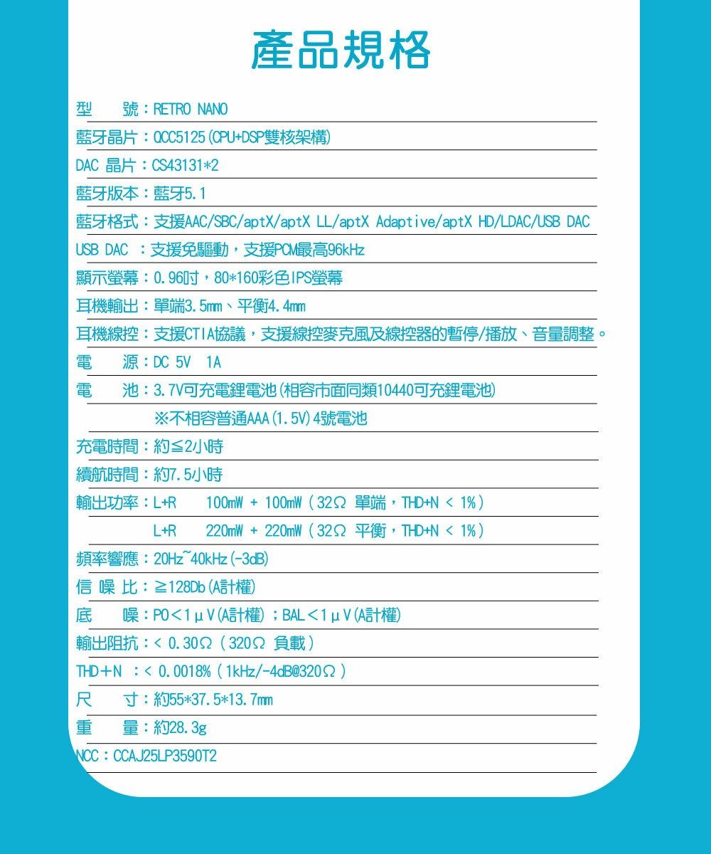 小小NANO,大大能量|輕巧一握的袖珍身形,如影隨形的掌中玩物;蘊藏2顆高性能DAC,可爆發出220Mw的大能量,讓每一次聆聽都成為享受。
