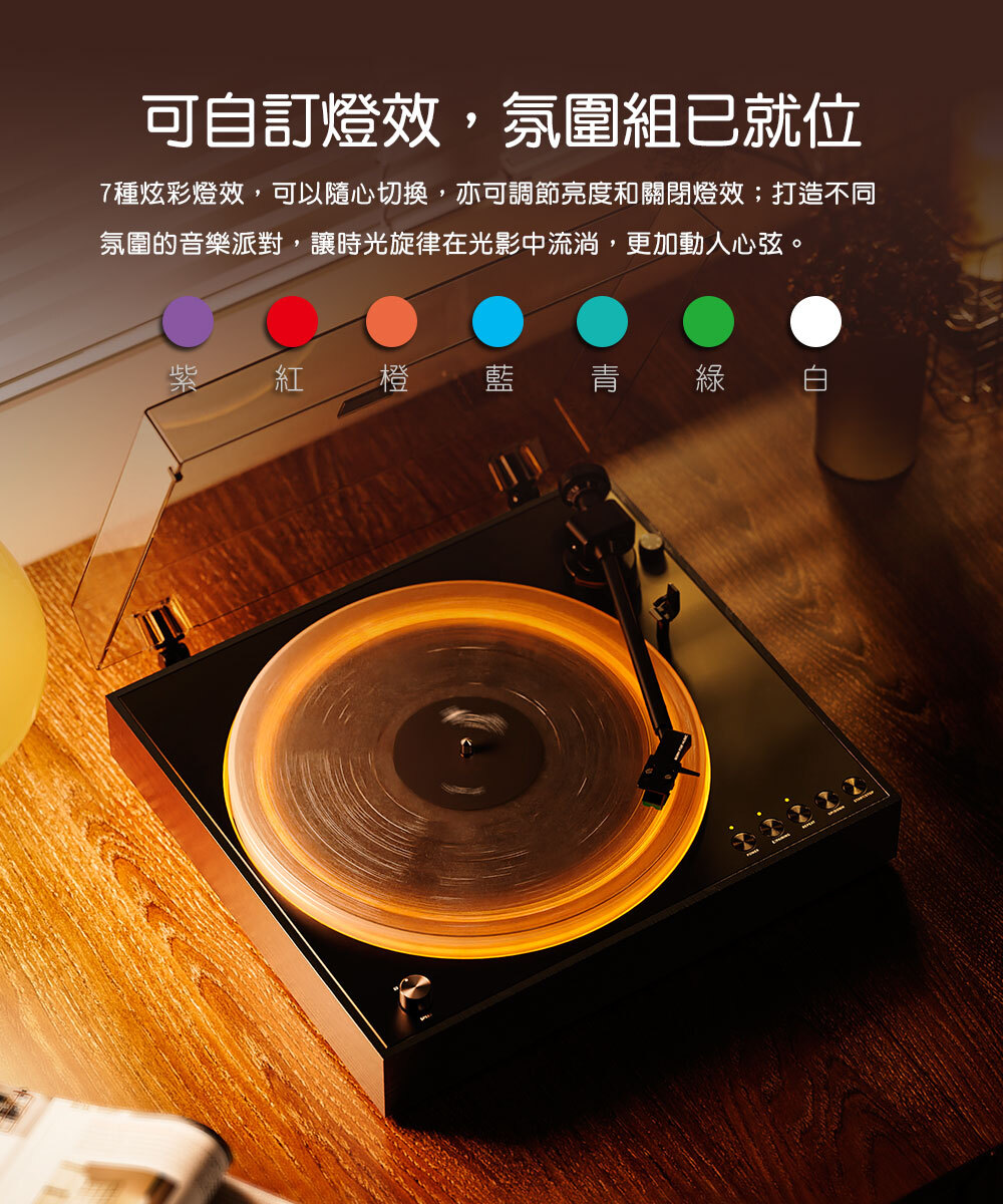 內建藍牙發射晶片,一鍵快速配對;無線連接輕鬆讓黑膠音樂流淌到每個角落。