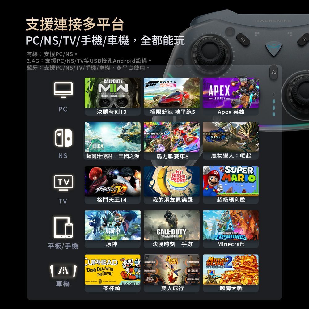 藍牙:支援PC/NS/TV/手機/車機,多平台使用。