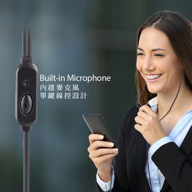 採用3.5mm標準直插型插頭,可相容市面上大部分具3.5mm音訊孔的手機/平板/電腦等設備,單鍵線控+麥克風設計輕鬆免持通話,適用通勤、旅行等移動時搭配智慧型手機設備使用。