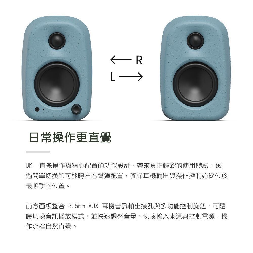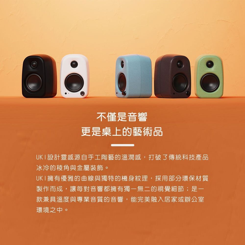 UKI擁有優雅的曲線與獨特的機身紋理,採用部分環保材質製作而成,讓每對音響都擁有獨一無二的視覺細節;是一款兼具溫度與專業音質的音響,能完美融入居家或辦公室環境之中。