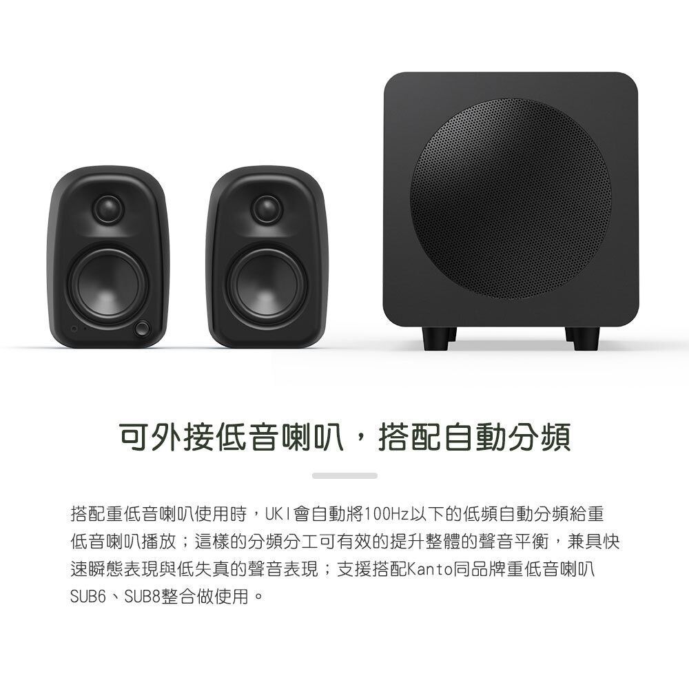 支援搭配Kanto同品牌重低音喇叭SUB6、SUB8整合做使用。