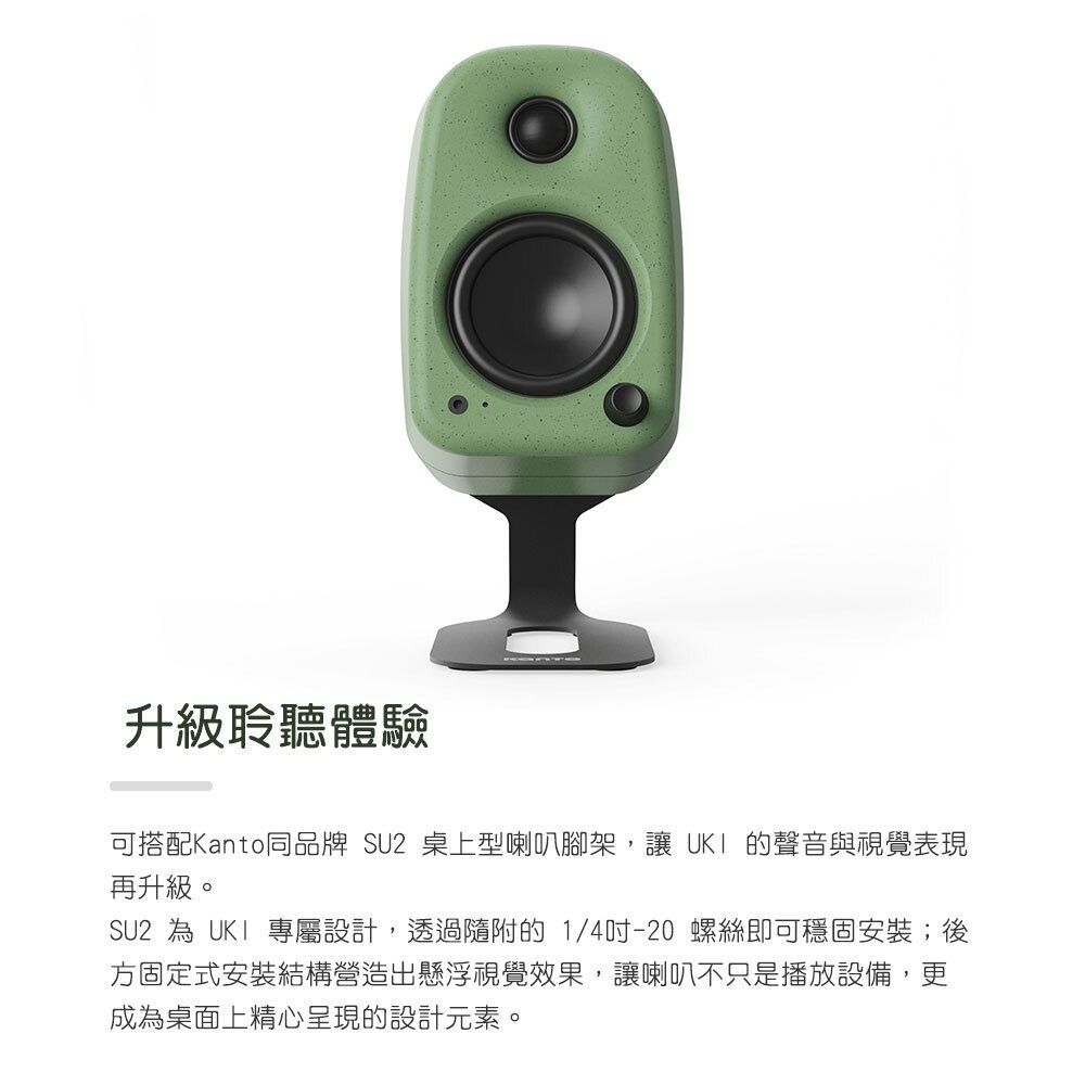 可搭配Kanto同品牌 SU2 桌上型喇叭腳架,讓 UKI 的聲音與視覺表現再升級。