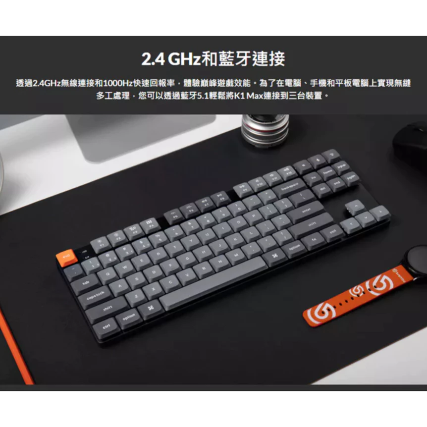 K1 Max是一款矮軸的無線機械式鍵盤,採用TKL(80%)佈局。它支援2.4GHz、藍牙和有線連接。在QMK/VIA的支持下,它為您的工作和遊戲提供了無限的可能性並提高了生產力!