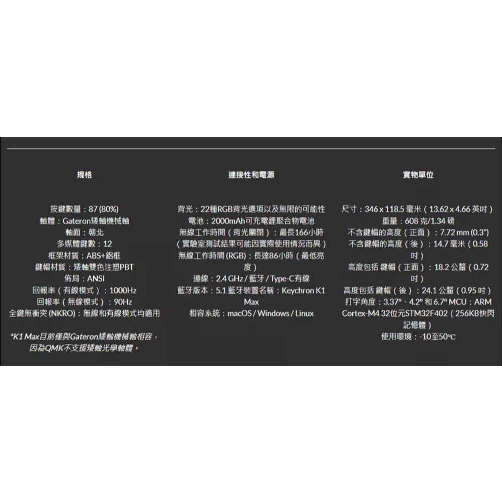 藍牙版本:5.1 藍牙裝置名稱:Keychron K1 Max