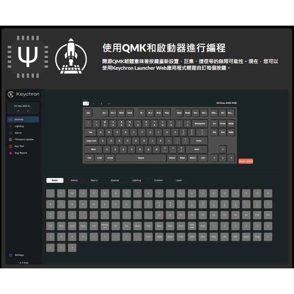 開源QMK韌體意味著按鍵重新設置、巨集、捷徑等的無限可能性。現在,您可以使用Keychron Launcher Web應用程式輕鬆自訂每個按鍵。