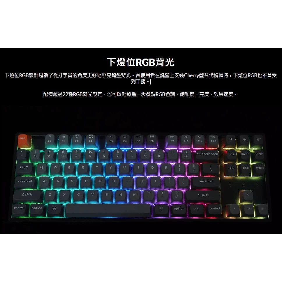 下燈位RGB設計是為了從打字員的角度更好地照亮鍵盤背光。當使用者在鍵盤上安裝Cherry型替代鍵帽時,下燈位RGB也不會受到干擾。