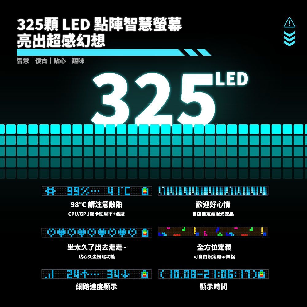 智慧顯示螢幕,可動態編輯內容、開機顯示、CPU使用率及各種貼心提醒,兼具趣味與智能設計。