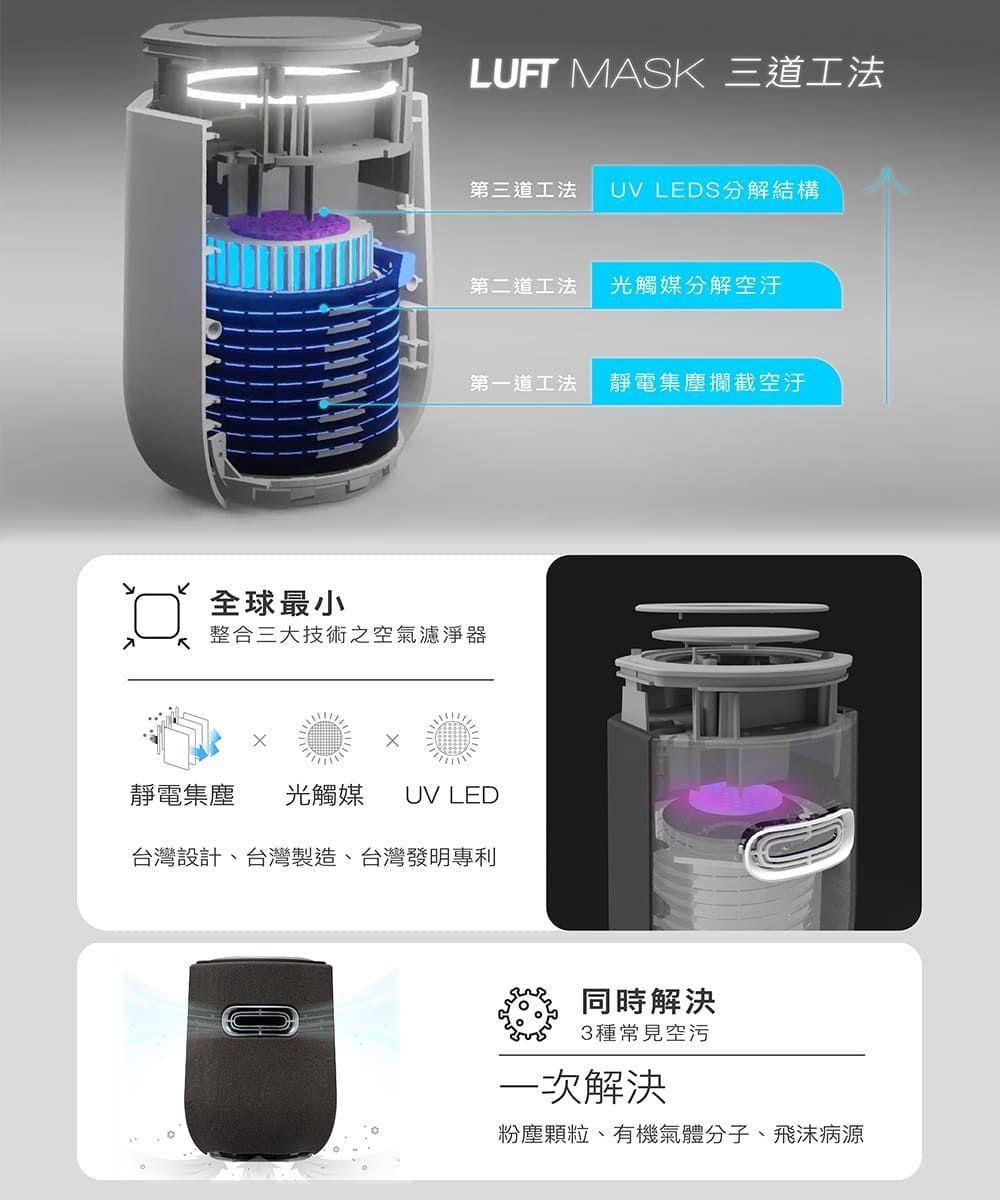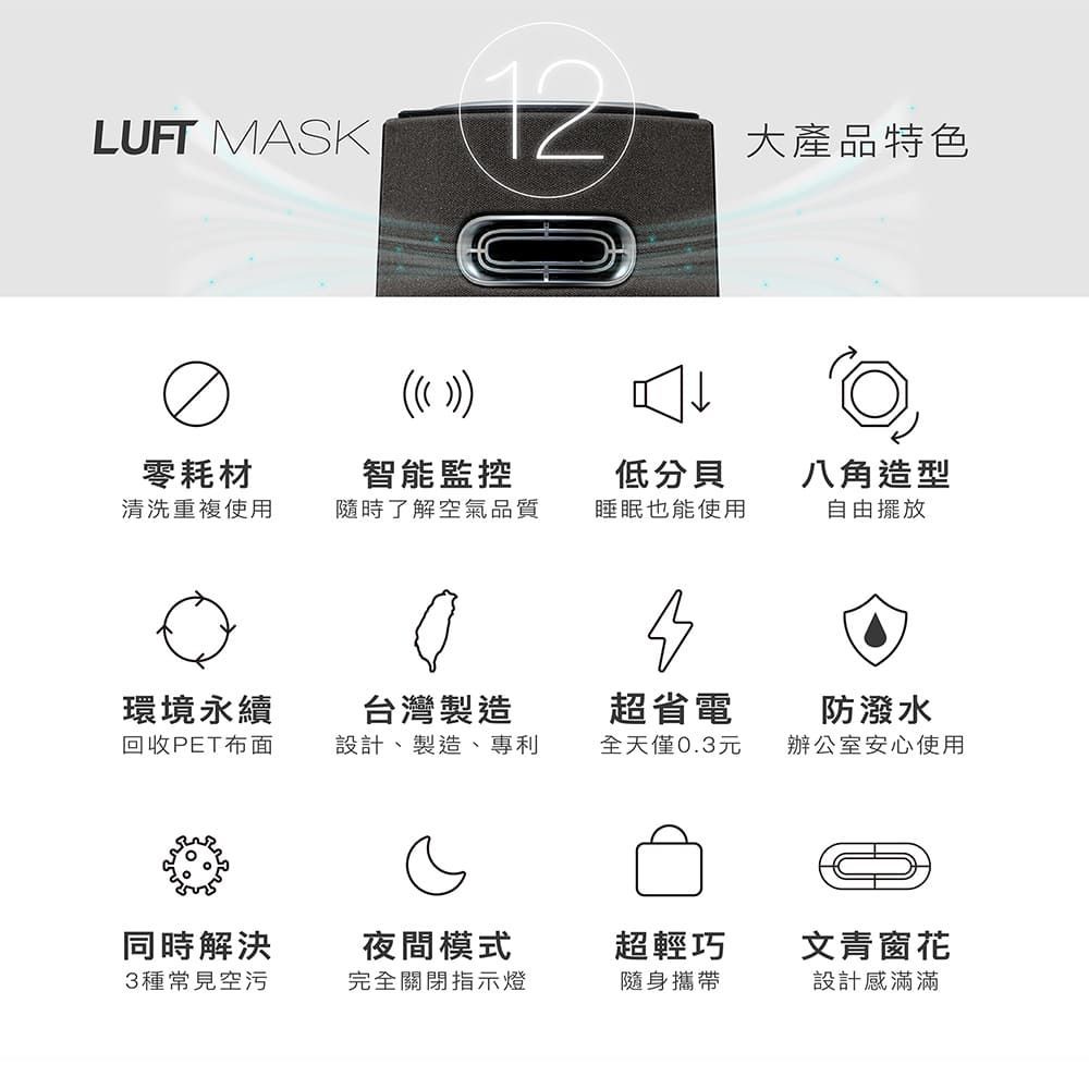 產品僅包含LUFT MASK光觸媒空氣清淨機、Type-C轉USB電源線。