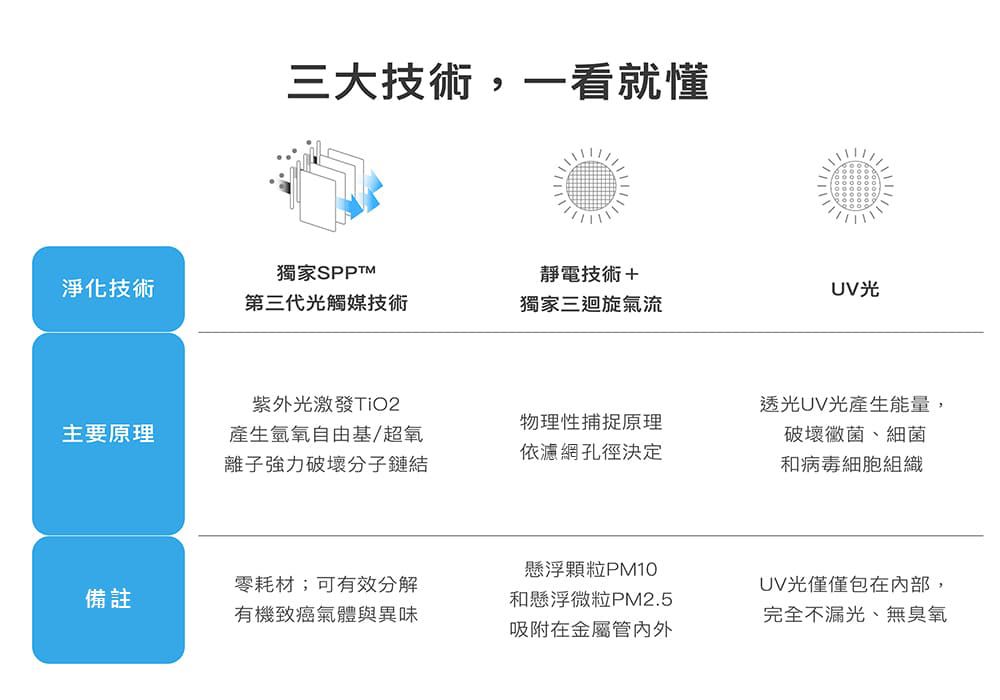 ● SPP光觸媒技術/靜電技術+獨家三迴旋氣流