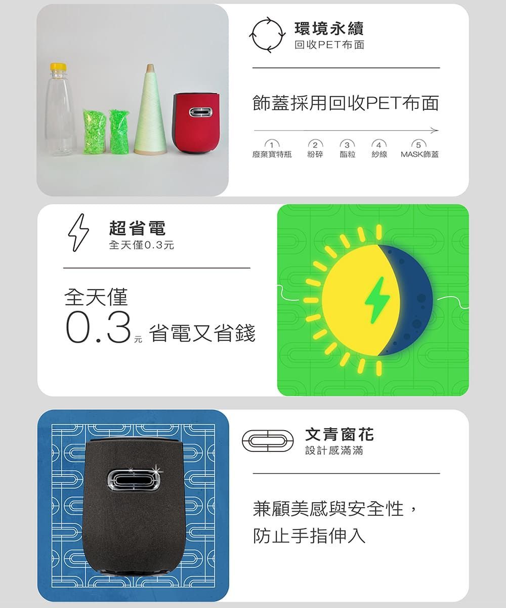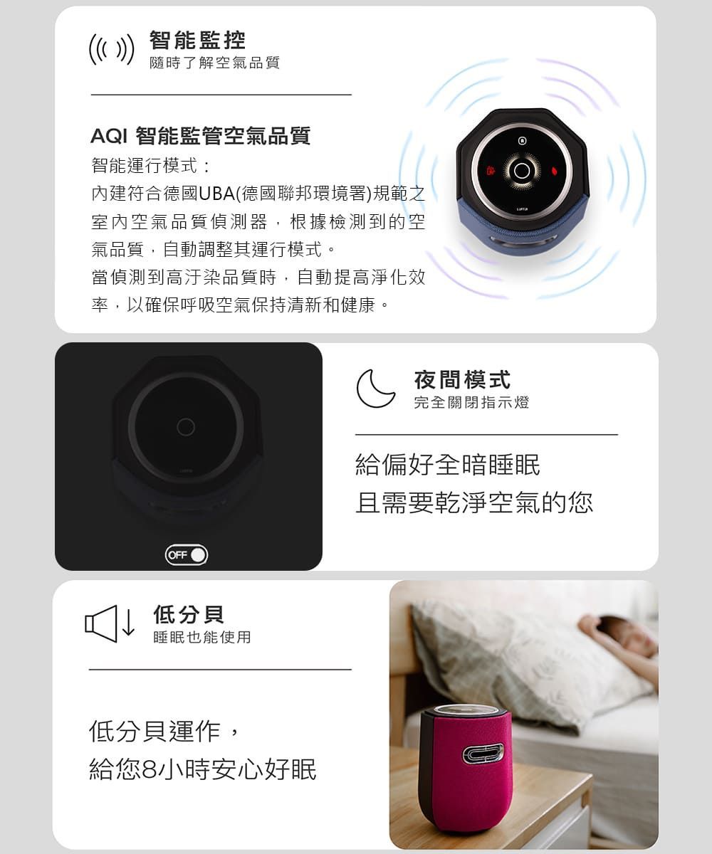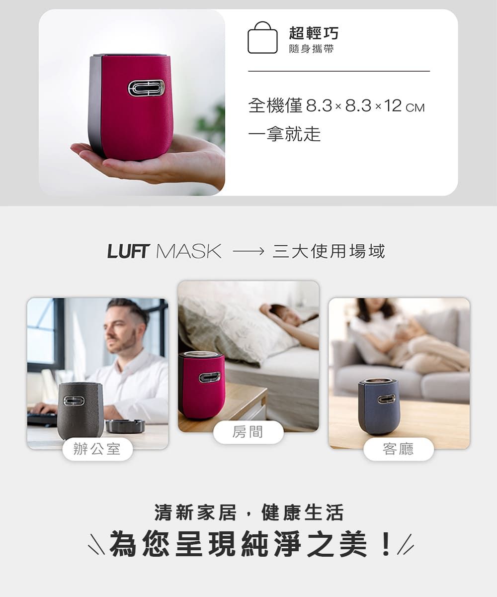 LUFT Mask設計放在個人周邊,辦公室桌上,睡眠旁的床頭矮櫃上,