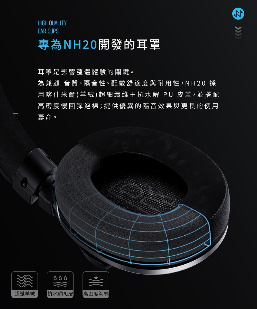 NH20 採用喀什米爾(羊絨)超細纖維+抗水解 PU 皮革,並搭配高密度慢回彈泡棉。