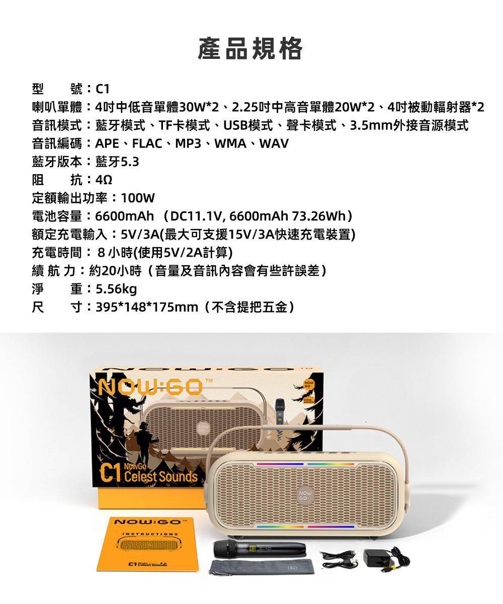 【NOWGO C1 手提式多功能派對K歌藍牙喇叭】