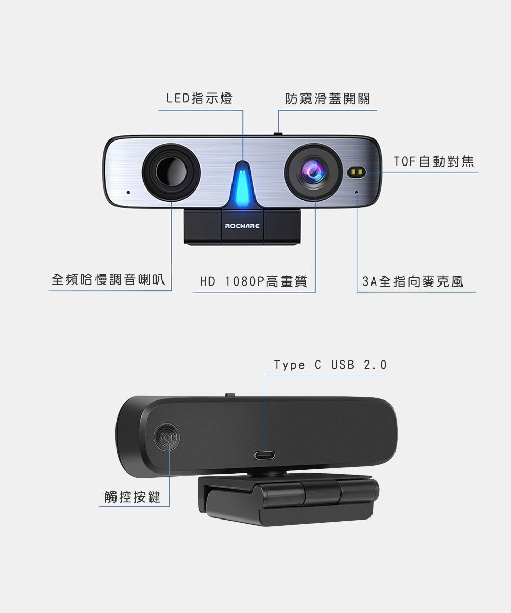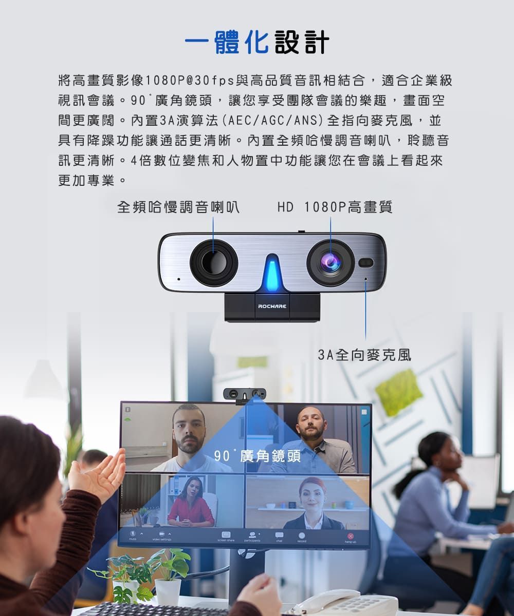 【ROCWARE RC08高畫質ePTZ三合一視訊攝影機】
