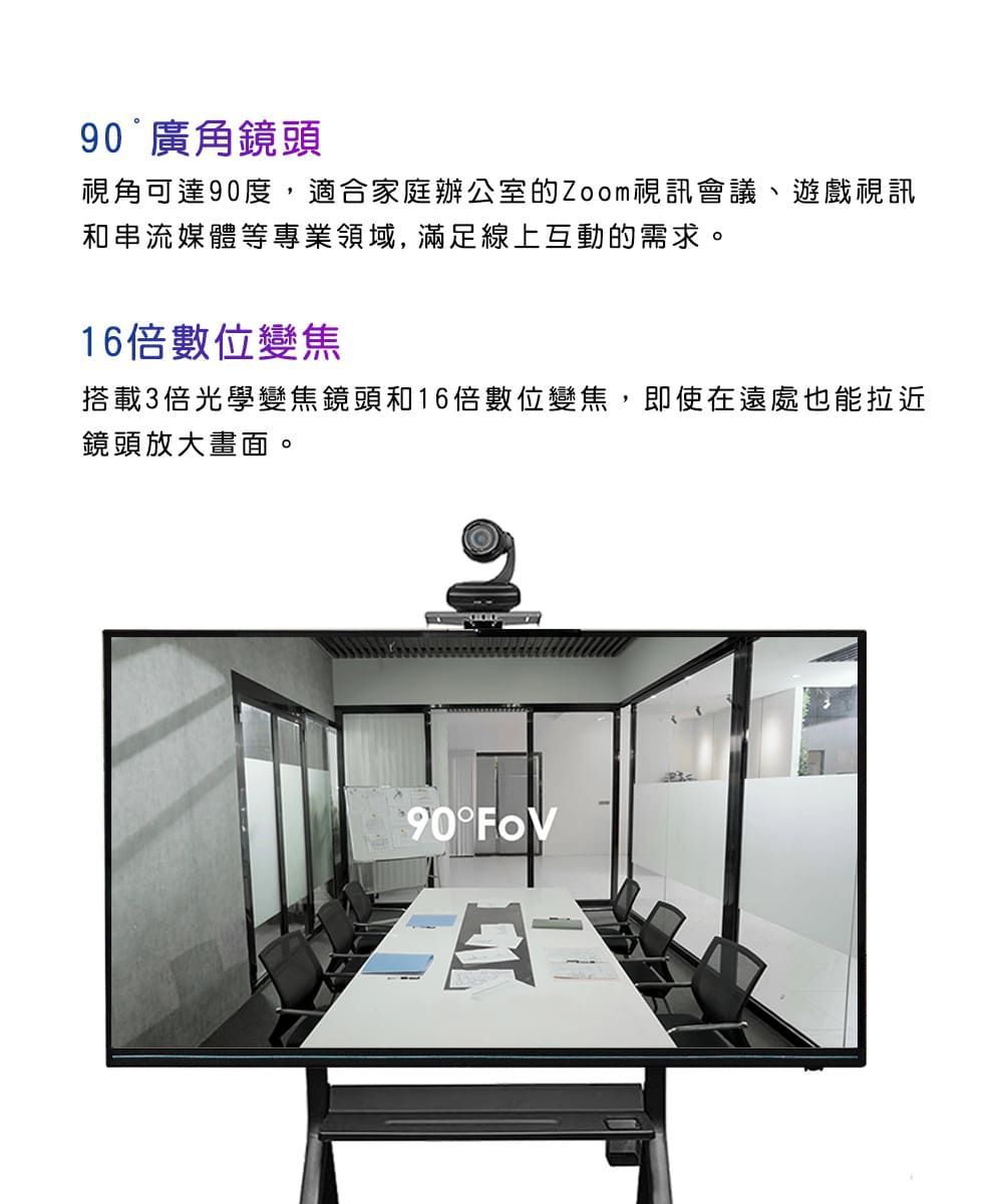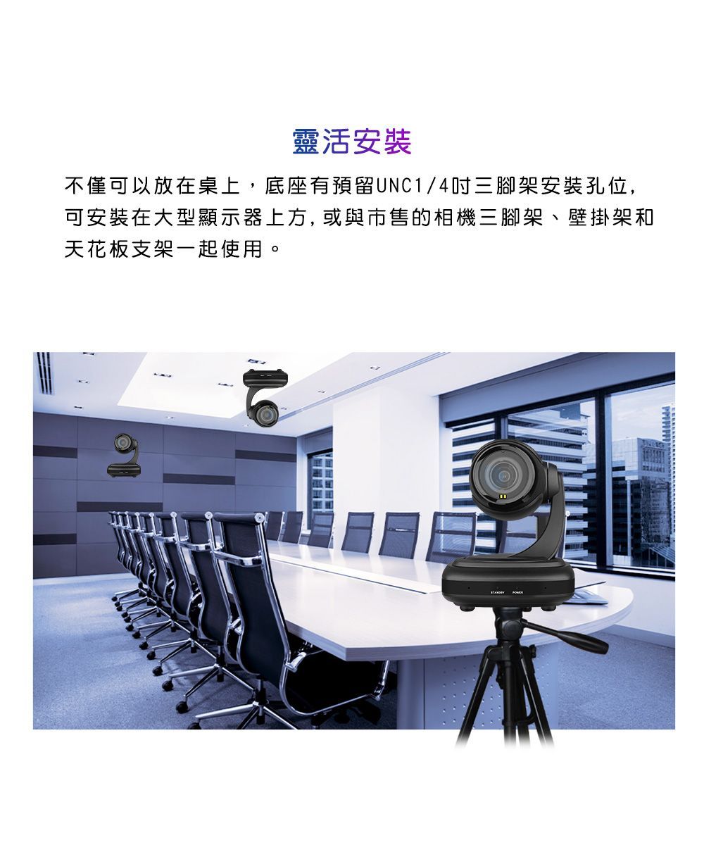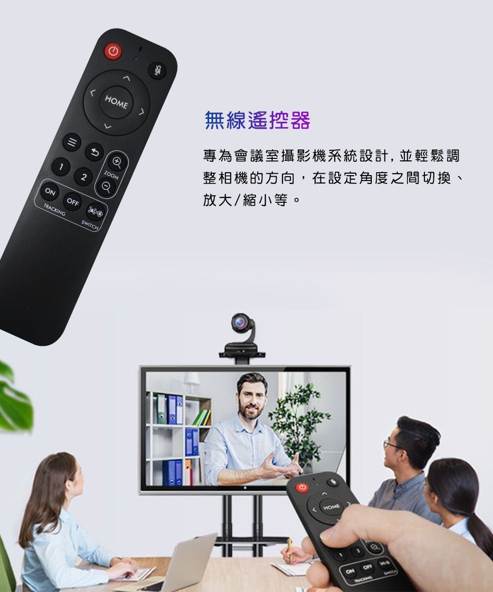 搭配無線遙控器,專為會議室攝影機系統設計, 並輕鬆調整相機的方向。