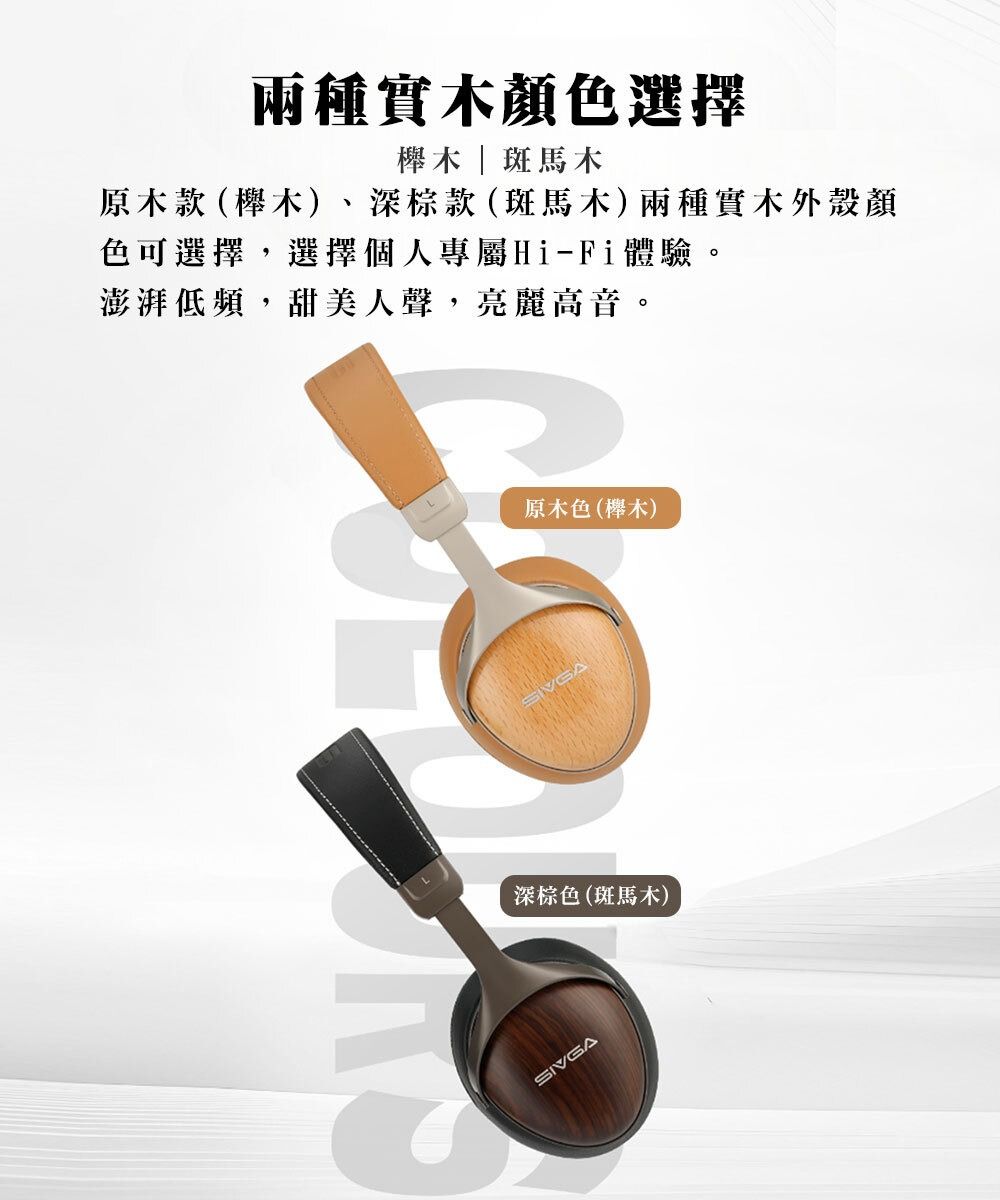 原木色(櫸木)、深棕色(斑馬木)兩種實木外殼顏色可選擇,選擇個人專屬Hi-Fi體驗。