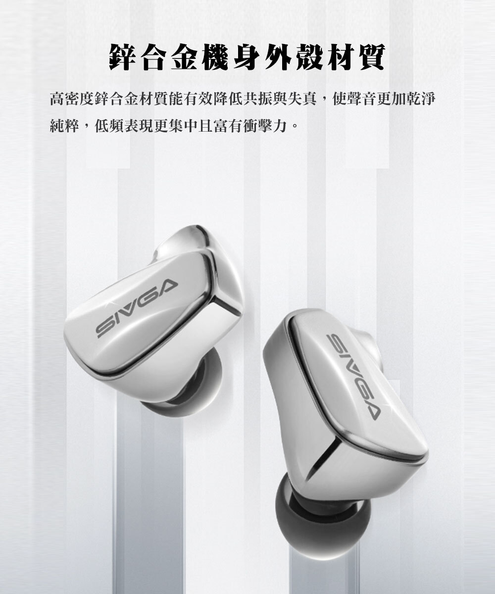 高密度鋅合金材質能有效降低共振與失真,使聲音更加乾淨純粹,低頻表現更集中且富有衝擊力。