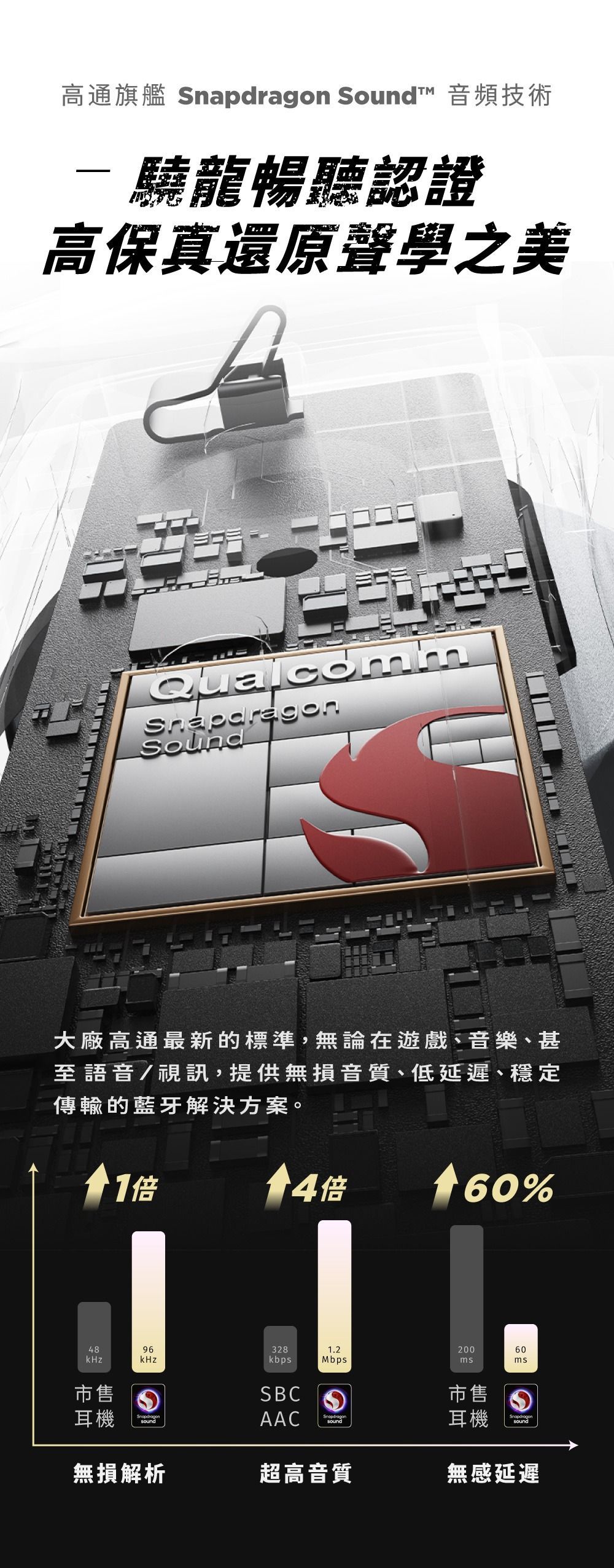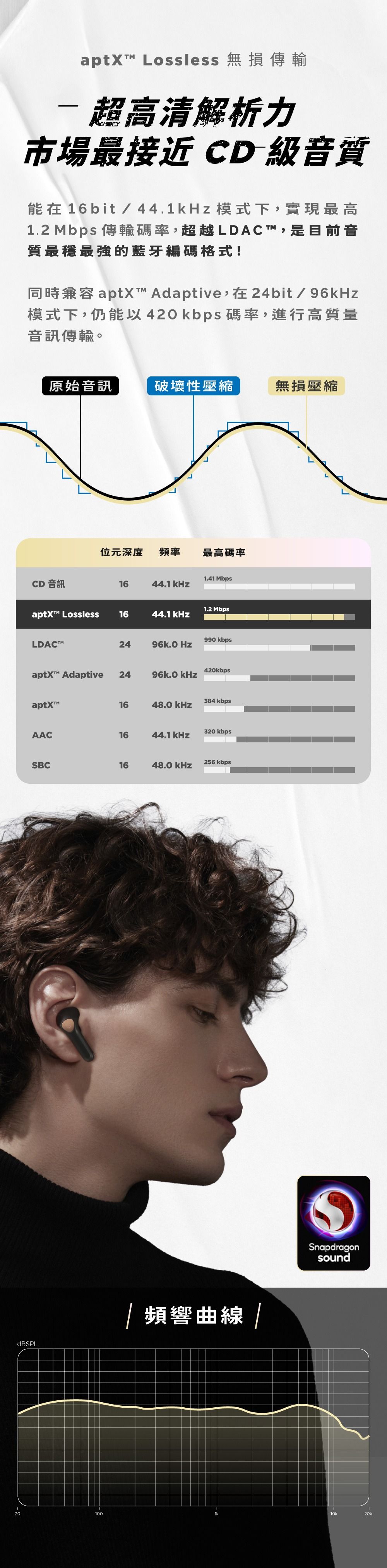音頻解碼:SBC / AAC / aptX™ Lossless / aptX™ Adaptive
