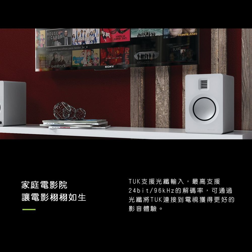 兼具時尚與高性能的TUK,出色的音質源於監聽等級的氣動式喇叭,並配備豐富的輸出介面,不論是桌上型還是做家庭影院使用,都能帶來沉浸式體驗。