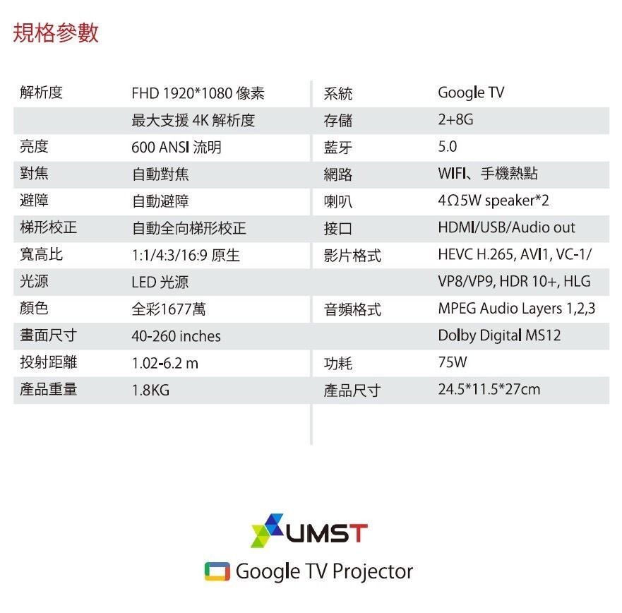 内置系统: 正版4K Google TV系統 (Google語音助理)