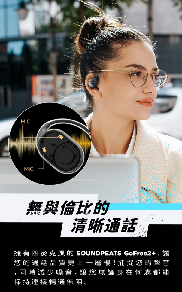 ◣SoundPeats ◥ GoFree2+ 開放式無線耳機 - 藍芽5.3/氣傳導/耳掛式/立體聲
