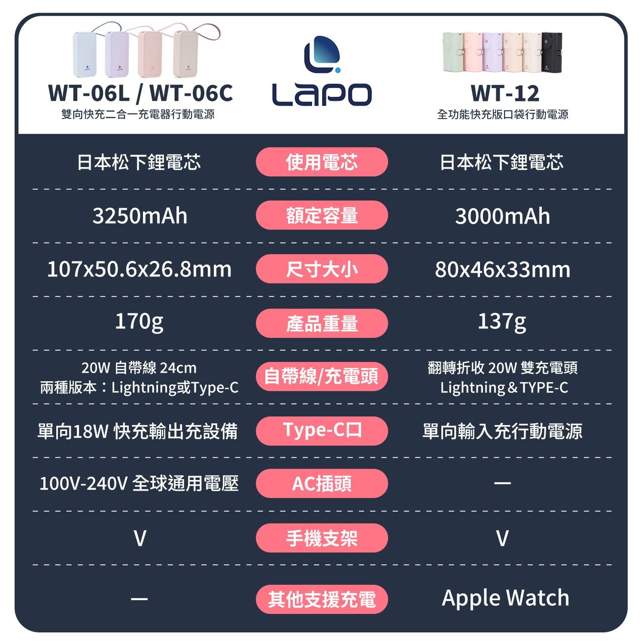 LaPO 全功能快充版口袋行動電源 WT-12(幻紫)